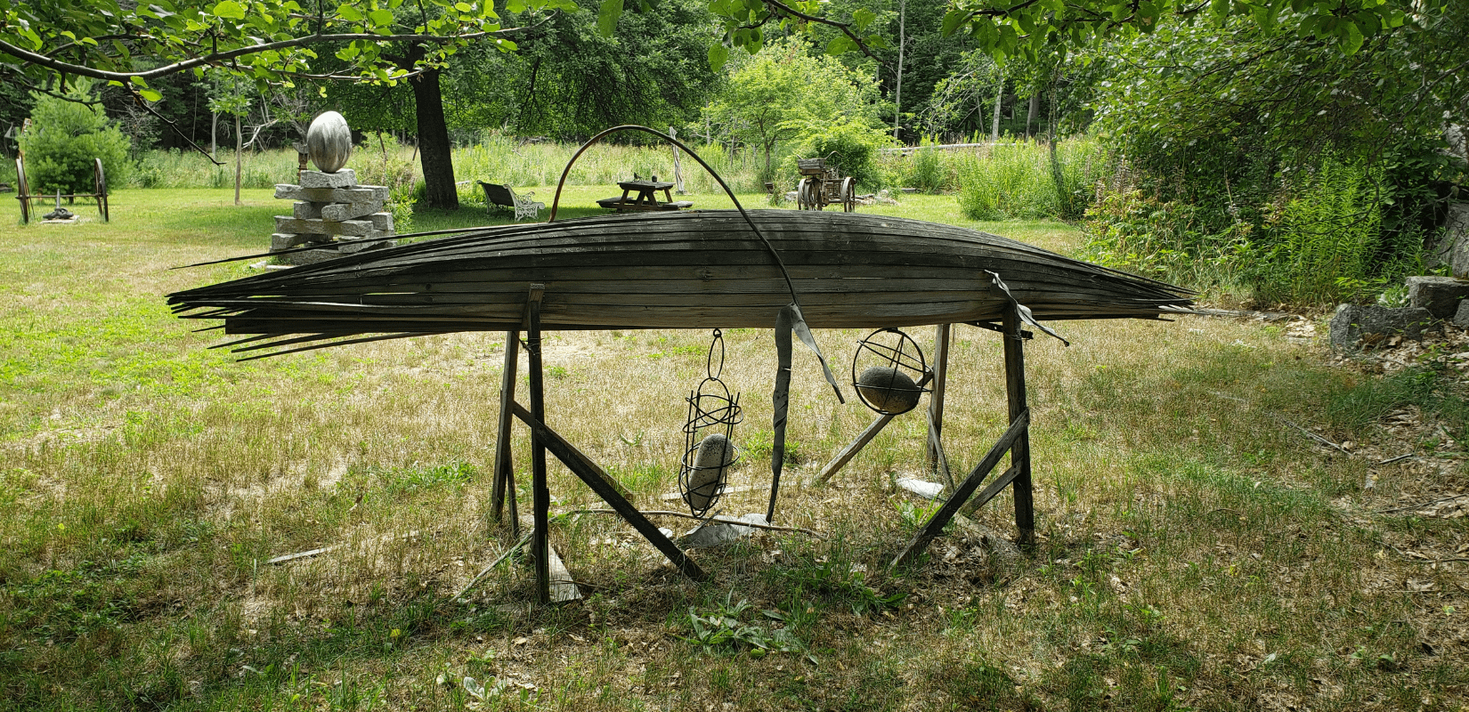 Originally home to the Hulls Cove Tool Barn, the property evolved into the Sculpture Garden in 2000. For decades, it served as both a creative and educational space for visitors interested in traditional tools and modern art. Although the Davistown Museum closed in 2023 following Skip’s retirement, (Along with the Tool Barn) the sculpture garden remains open as a public art park and tribute to his legacy.